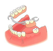 The missing teeth are replaced by plastic or porcelain teeth supported by a metal framework.